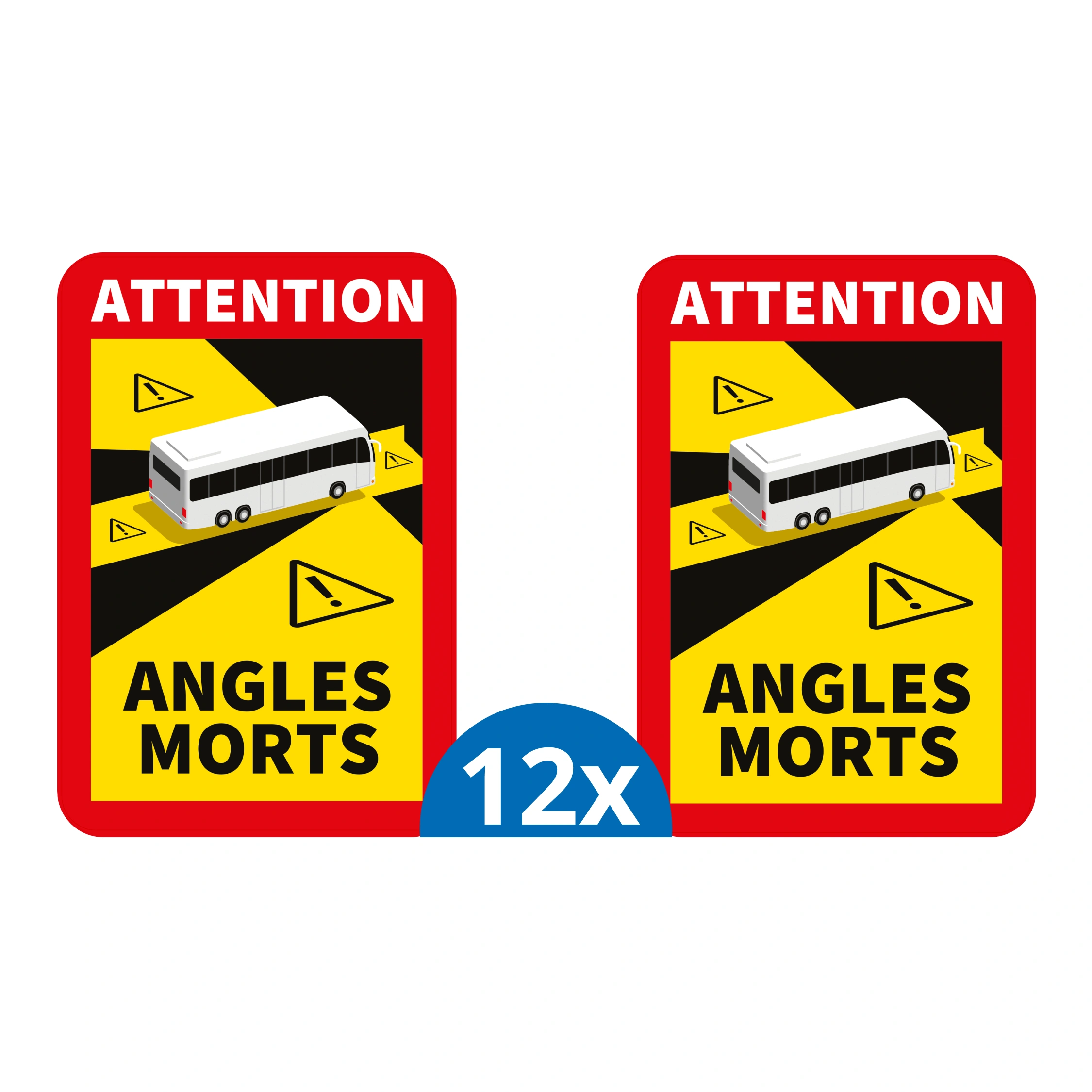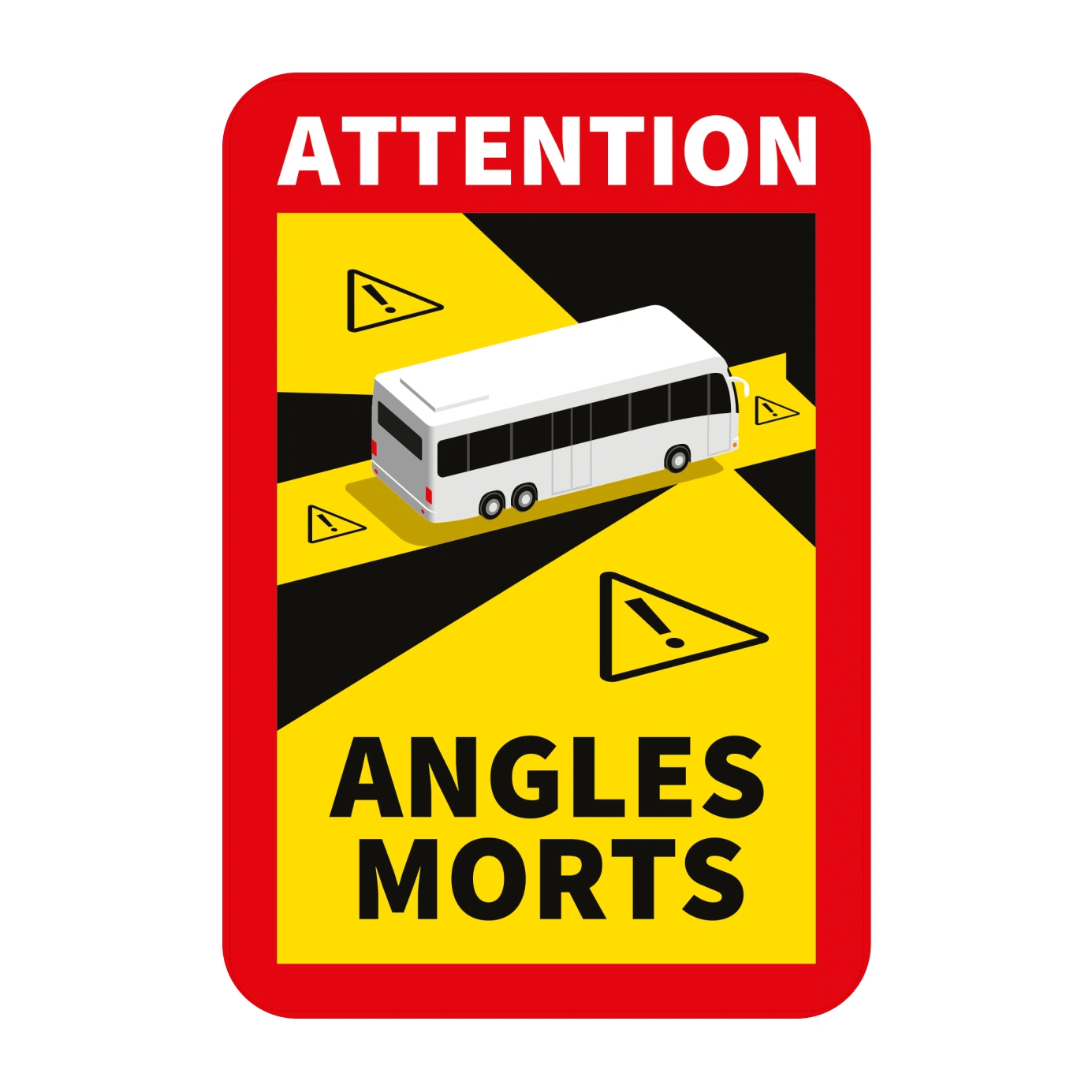 Lernen Sie den Aufkleber 'Angles Morts' kennen, ein unverzichtbares Sicherheitszubehör für Fahrzeuge in Frankreich. Dieser Aufkleber ist 25 cm x 17 cm groß und hat einen auffälligen roten Rahmen mit dem Wort 'Achtung' in weißer Schrift am oberen Rand. Im Inneren des Aufklebers befindet sich ein gelb-schwarzes Feld mit einem stilisierten Kreuz, vier dreieckigen Warnzeichen und der Abbildung eines Lkw oder Busses. Am unteren Rand des Aufklebers steht in großen schwarzen Buchstaben auf leuchtend gelbem Hintergrund der Satz 'ANGLES MORTS'. Der Aufkleber 'Angles Morts' wurde speziell für Fahrzeuge mit hochwertiger Lackierung entwickelt, wie Busse, Wohnmobile und Lastwagen, die auf französischen Straßen fahren. Die Plakette entspricht den Anforderungen des Artikels R.313-32-1 der französischen Straßenverkehrsordnung.
