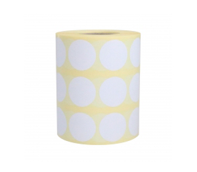Weiß glänzende Inkjet 50-76 Etiketten sind rund und haben einen Durchmesser von 50mm mit einem Kern von 76mm.