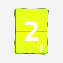Einer unserer Din A4 Stickerbögen ist das Modell mit 2 Stickern pro Bogen. Diese Stickerbögen bestehen aus 70 gramm weißem Papier. Die Rückseite wiegt 55 gramm. Die Aufkleber haben eine permanente Klebkraft.