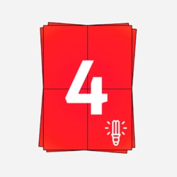 Einer unserer Din A4 Stickerbögen ist das Modell mit 4 Stickern pro Bogen. Diese Sticker bestehen aus 70 gramm weißem Papier. Die Rückseite wiegt 55 gramm. Die Aufkleber haben eine permanente Klebkraft.