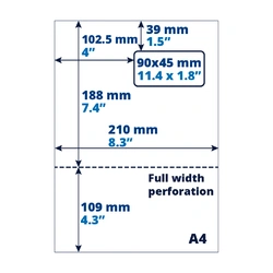 Diese Rücksende- oder Lieferscheinetiketten sind bedruckbare A4-Bögen mit einem integrierten Etikett (90x45 mm). Das Retouren-Etikett eignet sich somit als Adressetikett auf einem Paket. Das Rücksendeetikett ist permanent haftend und hat unten einen abreißbaren Abschnitt (210x109 mm). Ein Karton enthält 1000 Bögen. Diese Rücksendeetiketten sind sehr gut für E-Commerce und Webshops geeignet. Sowohl der Lieferschein als auch das Rücksendeetikett können auf einen Bogen gedruckt werden. Dies gewährleistet einen einfachen Rücksendevorgang bei Webshops, die dem Kunden bei der Rücksendung des Produkts Arbeit abnimmt. Die Bögen können einfach mit einem Tintenstrahl- oder Laserdrucker bedruckt werden.